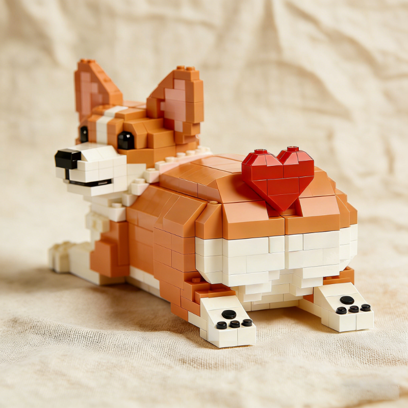 This Corgi features its iconic long body, tiny legs, and heart details, blending playful energy with sweet