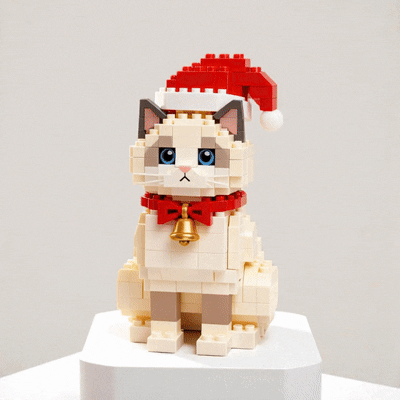 Inspired by the beloved Ragdoll breed, this brick cat wears a festive Santa hat and a golden bell bow tie — a symbol of comfort and joy.