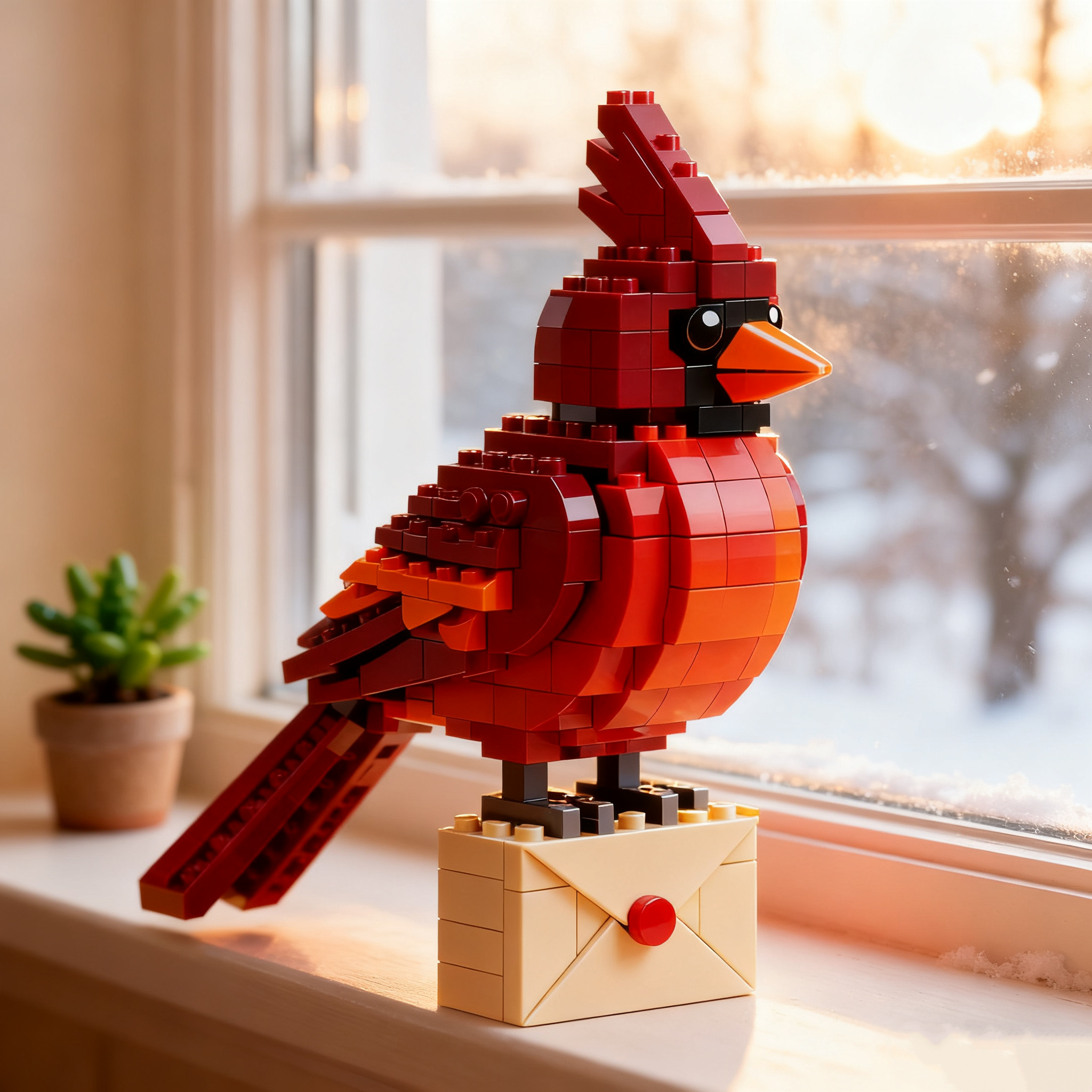 Vibrant red bricks recreate the beauty and strength of the cardinal.