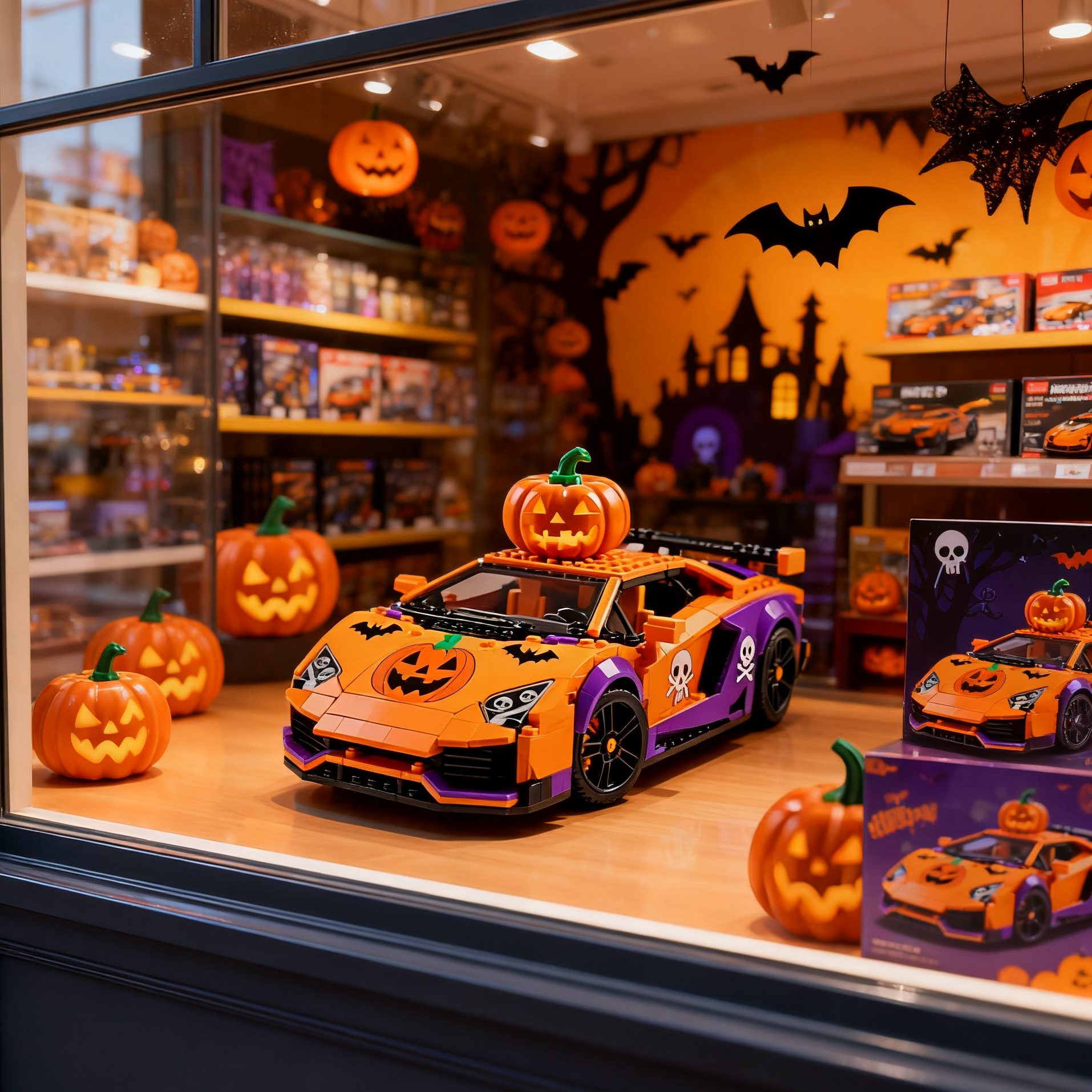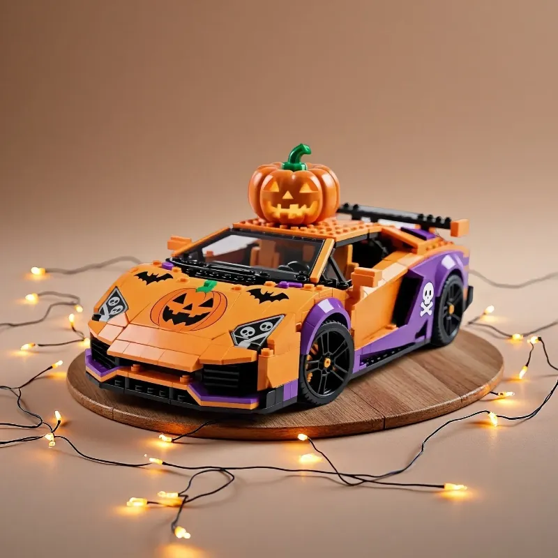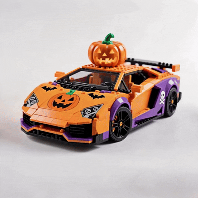 This Halloween Edition Racing Car Brick Set combines the thrill of supercars with the spooky charm of pumpkins, skulls, and bats. A unique collectible that brings both speed and seasonal fun.