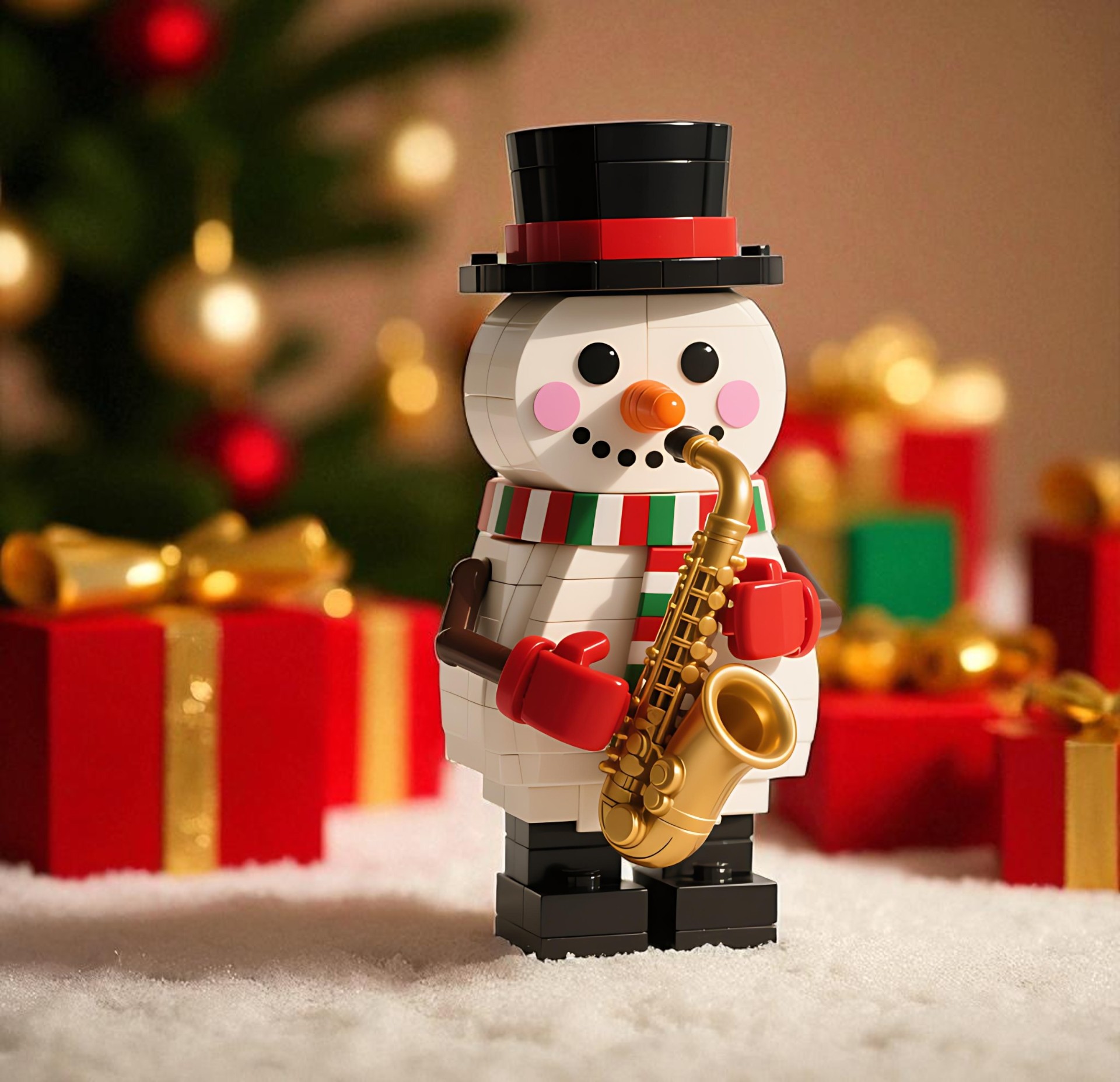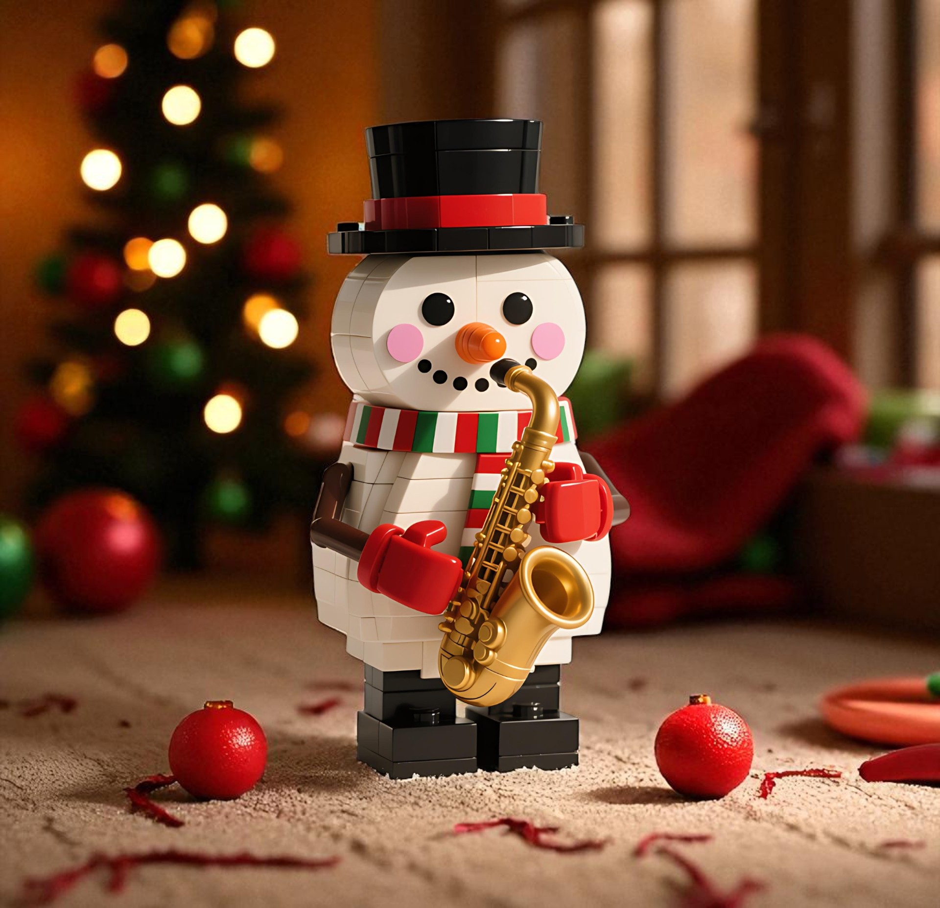 Unlike mass-produced decor, this exclusive set lets you build & display a festive snowman musician with poseable arms and metallic saxophone. Heartwarming, musical, and unforgettable!